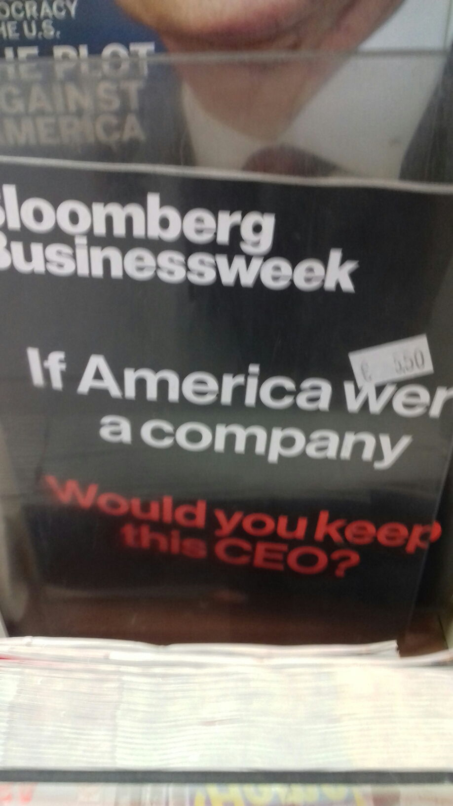 At the airport I see a copy of Bloomberg Businessweek which poses on its cover the stark question: If America were a company, would you keep this CEO?