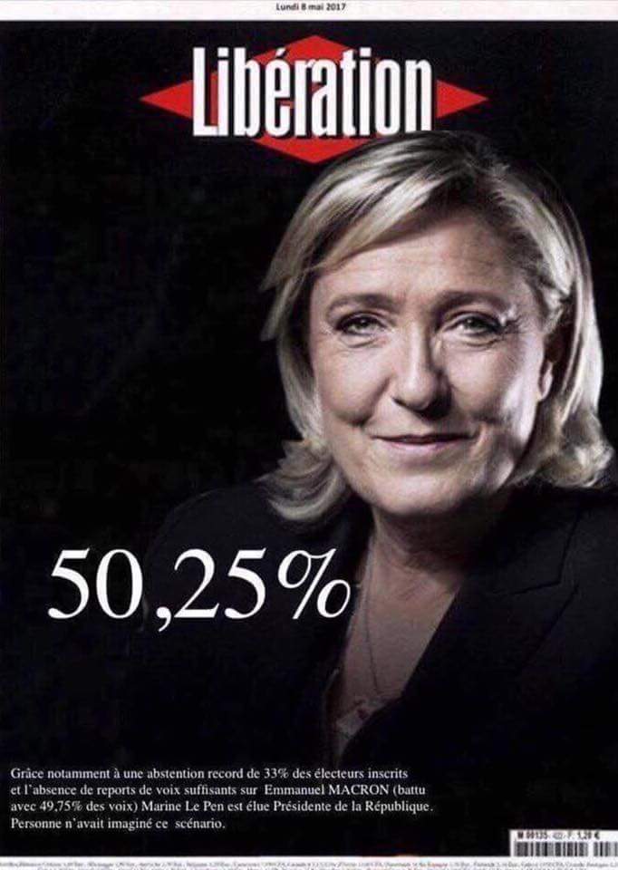 As for the Left which actively encouraged people to abstain, I’m left feeling a little like those left-wingers who in previous generations lost faith with Stalinism upon seeing the brutal repression in Hungary in 1956 and Prague in 1968. Just as the initial burst of support for Mélenchon was encouraging, his subsequent abdication of moral responsibility was shocking. Le Pen could actually have won. Macron had no automatic base of support. The establishment right could have swung over (I don’t think by the way they would have supported Mélenchon). An opportune terrorist attack could have created a bloodthirsty atmosphere which Le Pen would have luxuriated in. The desperate attempts at hacking (seemingly started by the US far-right with Russian assistance and then actively promoted by Wikileaks) could have been better coordinated and might have worked. Perhaps a fascist government wouldn’t have damaged the immediate life chances of the teenage edgelords running round Paris last week, but overnight the plight of refugees would have worsened immeasurably and the whole infrastructure of human rights, climate action and international cooperation per se would have collapsed. I find the lack of solidarity with fascism’s potential victims contemptible. Credit to those Mélenchon voters who voted for the centrist to stop the fascist at a time when the arrogance and delusion of a generation of failed left leaders was on unproud display.