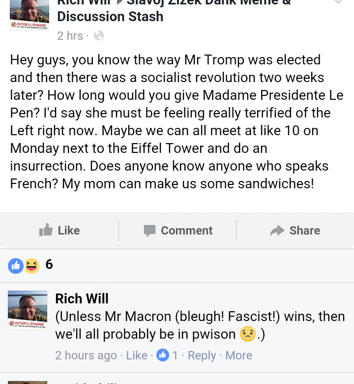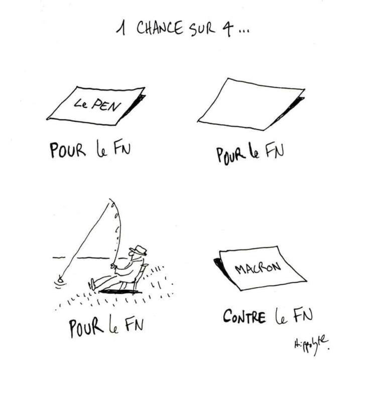 NB: I wrote this two days ago and now that I am no longer overcome with/by fury can see it has big holes in it. I am starting to accept that the argument for abstention had some political justification and that my own partial and privileged position has, along with my ignorance, prevented me from understanding the importance of certain dynamics. Thanks to those who have corrected me and I apologise for calling anyone who even knew anyone who was thinking of abstaining a connard. I’m posting it without fanfare as I think it has some merit and also because I want to use it to mark my resignation from my self-appointed role as a commentator on French politics.