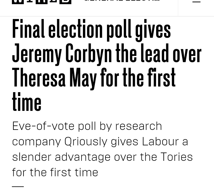 The other reason we have to have critical trust in what the liberal media reports is that the majority of what’s reported has a far more than casual relationship with the truth. And if you want to understand what’s going on in the world you need to have some sort access to facts. This election has shown up the consequences of rejecting what the ‘MSM’ says and believing in whatever you come across on yoir newsfeed. The news that social media sites target you with is not based on an understanding of what you as a citizen need to be aware of, but what they understand that you would like to be true. That’s why your timeline is full of stories stating confidently that Jeremy Corbyn is going to win. In reality – and I know this because I read a range of news sources and they all agree on this basic point – Labour is facing a catastrophe. That is a stark fact. The only reason it should be a surprise to you this evening when the first exit polls announce that Labour has been swept away across the board is if you haven’t been paying attention to reality, but rather choosing to believe a version of it which is based on far more sophisticated -and seductive means of manipulation than anything the traditional media can come up with.
