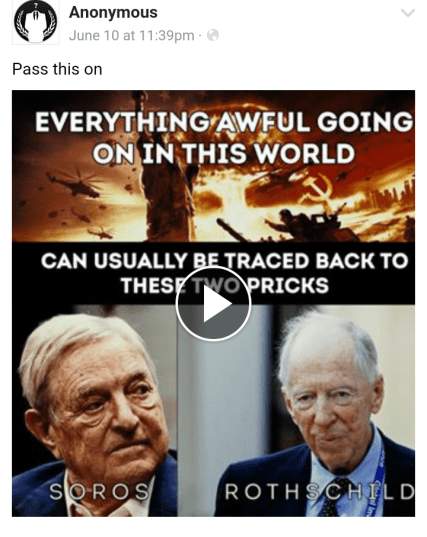 I’ve long been a member of numerous pro-Corbyn groups and I have seen anti-semitic material posted there. The better-organised ones remove it once warned, but in some such groups memes and videos blaming cabals of prominent Jewish people for the world’s problems are rife and widely approved of. Such material mostly derives from the noxious swamp of Sputnik, Russia Today, and fake news websites which push what to a cursory scroller may look like nothing more than an anti-neoliberal elite agenda, but a closer inspection quickly identifies the same old tropes: Soros, the Rothschilds, the shady hook-nosed NWO, etc. The memes in question aren’t coming from the Left, in the sense that they didn’t originate there, but they do often meet with a depressingly positive reaction.
